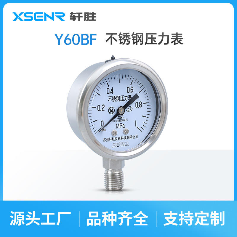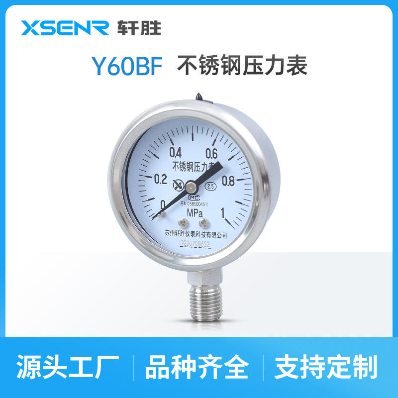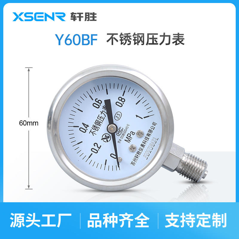 ซูโจวซวนเฉิง Y60BF เกจวัดแรงดันสแตนเลส 60 มม. การเชื่อมต่อเกลียว M14X1.5 ทนต่อการกัดกร่อน