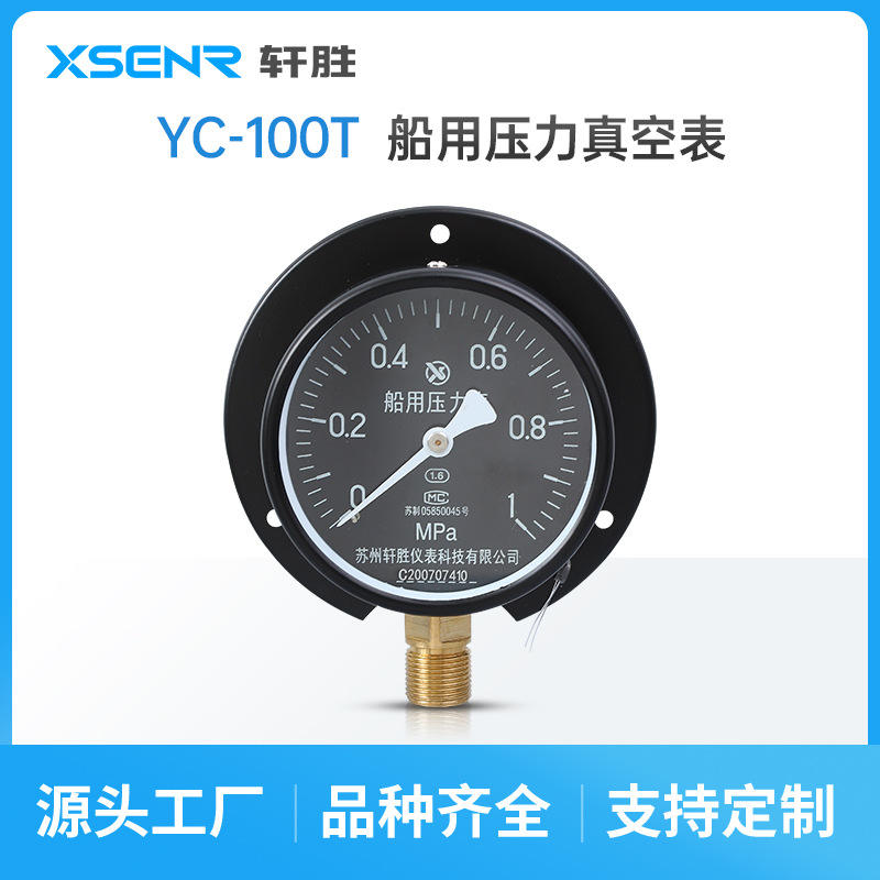 เกจวัดแรงดันทางทะเล Suzhou Xuansheng YC-100T ขนาด 100 มม. แบบเกลียวทองเหลือง -0.1 ถึง 1MPa แบบเรเดียล