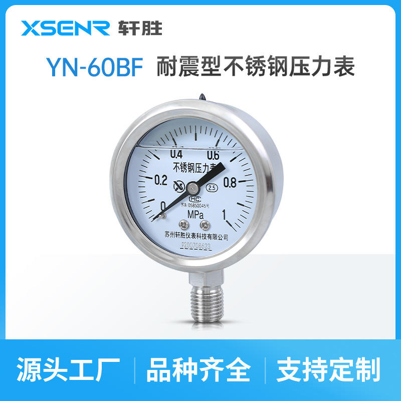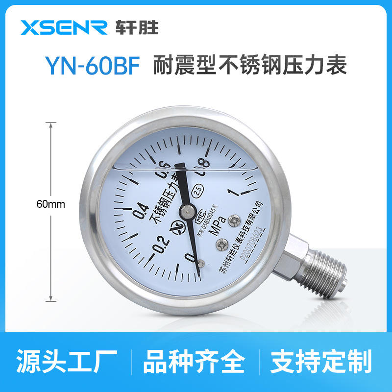 ซูโจวซวนเฉิง YN60BF 1Mpa เกจวัดแรงดันสแตนเลส การเชื่อมต่อแบบเกลียว เส้นผ่านศูนย์กลาง 60 มม. ทนต่อแรงกระแทก ทนต่อการกัดกร่อน