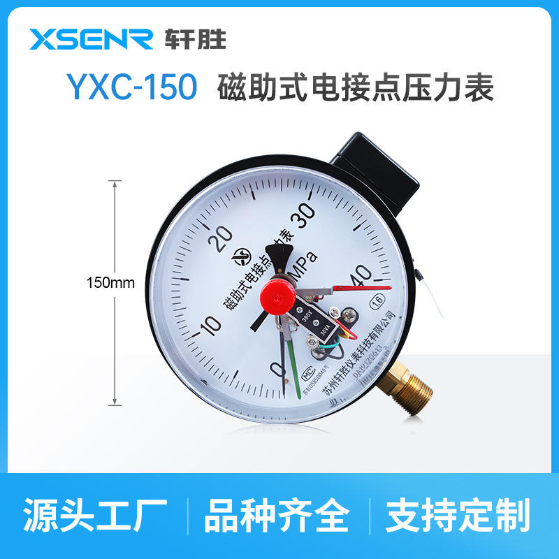 ซูโจว ซวนเฉิง YXC150 40Mpa เกจวัดแรงดันแบบแม่เหล็ก ข้อต่อเกลียว สแตนเลส 150 มม. ตัวควบคุมไฮดรอลิก