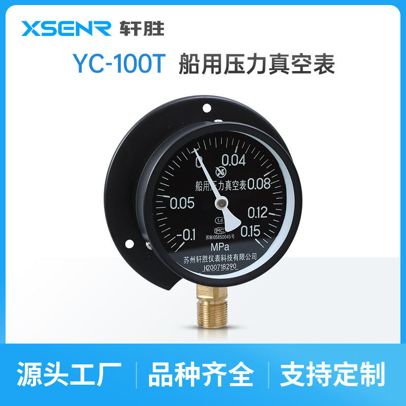 เกจวัดสุญญากาศทางทะเล Suzhou Xuanshengyi YC100T ขนาด 100 มม. แบบเกลียว -0.1 ถึง 0.15 Mpa