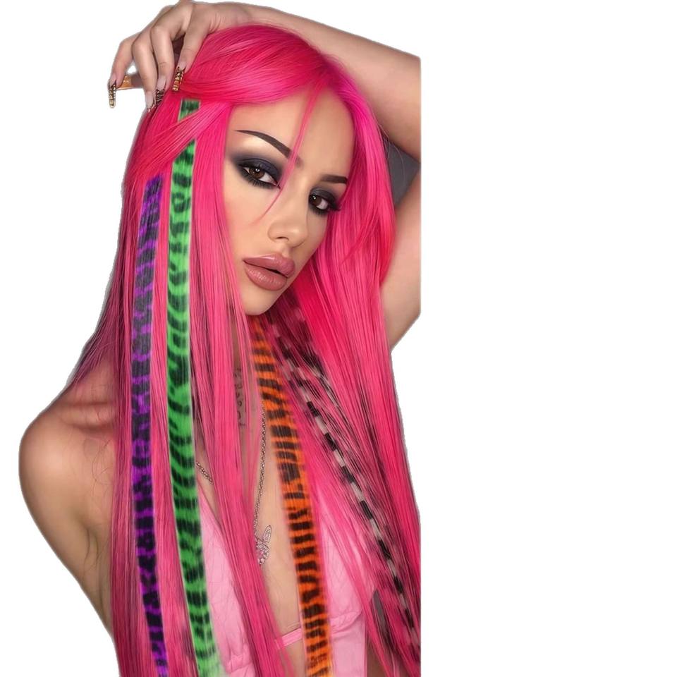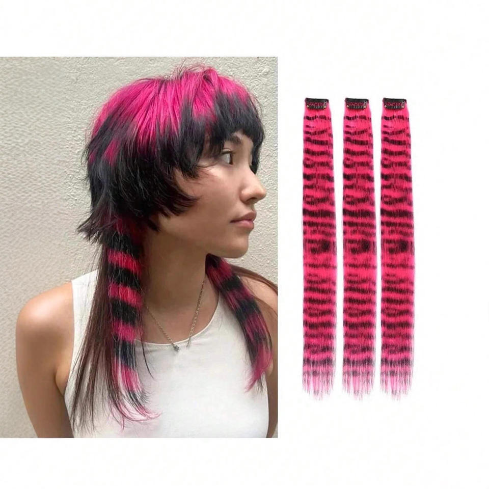 Sw307 ต่อผมสี 45 ซม. แบบตรง ทนความร้อนสูง ย้อมสีชมพู ดำ ลายเสือดาว ไร้รอยต่อ