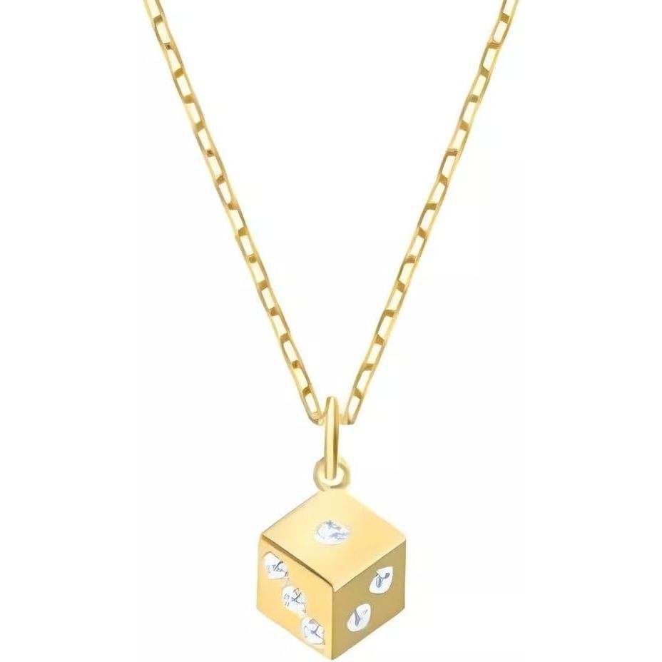 สร้อยคอจี้ลูกเต๋าโลหะผสมคริสตัลสวาโรฟสกี้สีทอง พร้อมตัวล็อคแบบก้ามปู เครื่องประดับแฟชั่น
