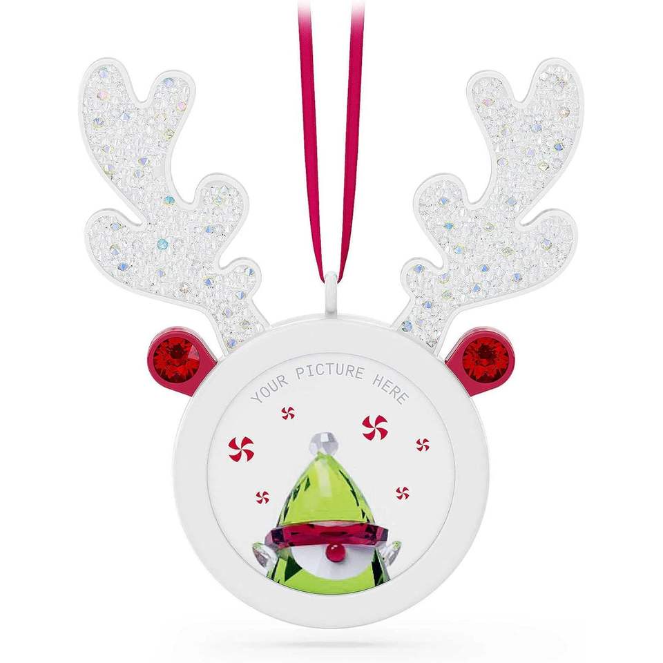 ที่แขวนรูปภาพรูปกวางเรนเดียร์ Swarovski Holiday Cheers พร้อมสายผ้าซาตินตกแต่งคริสตัลหลากสี สำหรับตกแต่งบ้านและเสื้อผ้า