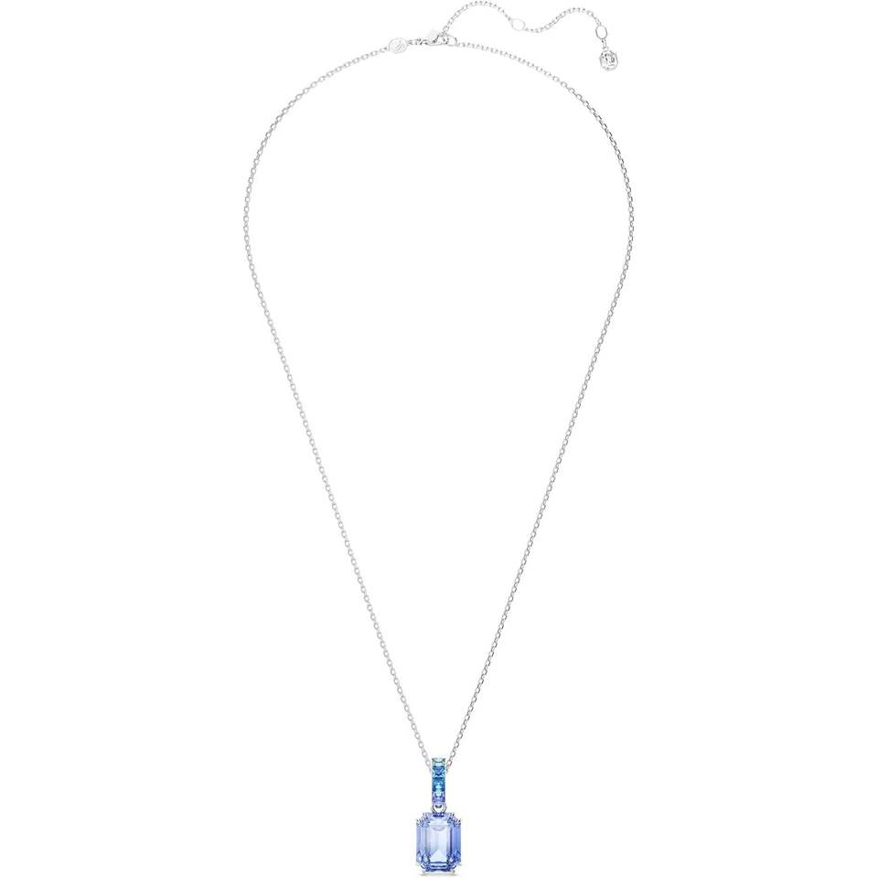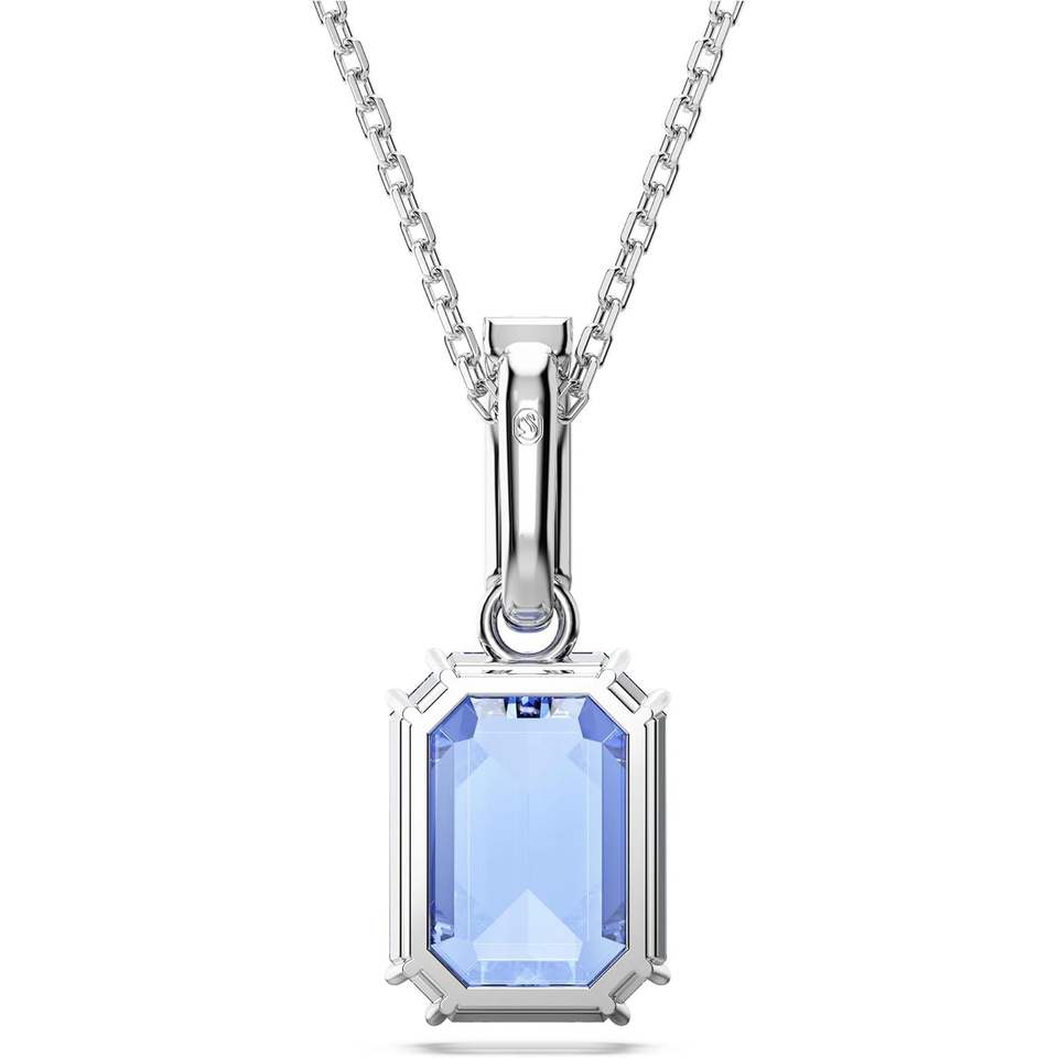 จี้คริสตัลสวารอฟสกี้ มิลเลเนีย ทรงแปดเหลี่ยม สีฟ้า ชุบโรเดียม พร้อมสายเคเบิล ประดับเพชร 1 เม็ด