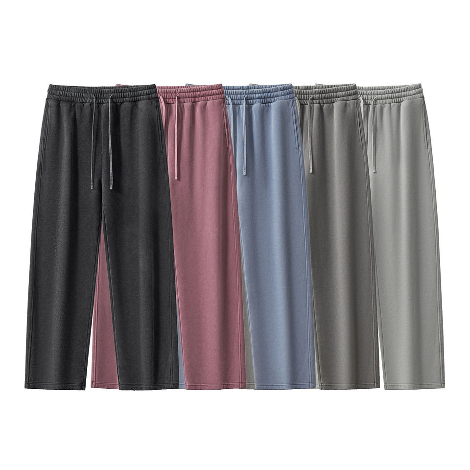 กางเกงวอร์มพิมพ์ลายซิลค์สกรีนแบบใหม่สไตล์วินเทจลำลองยูนิเซ็กส์สตรีทแวร์ทรงตรงแบบย้อมสีเอซิด