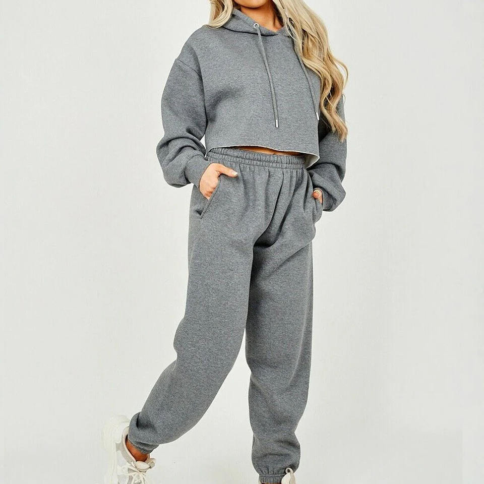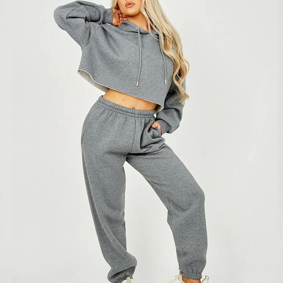ชุดวอร์มผู้หญิงแบบหนา แห้งเร็ว มีฮู้ด สีพื้น พิมพ์ลายพัฟ สำหรับสตรีทแวร์ กีฬา วิ่ง และสวมใส่ลำลองในฤดูหนาว