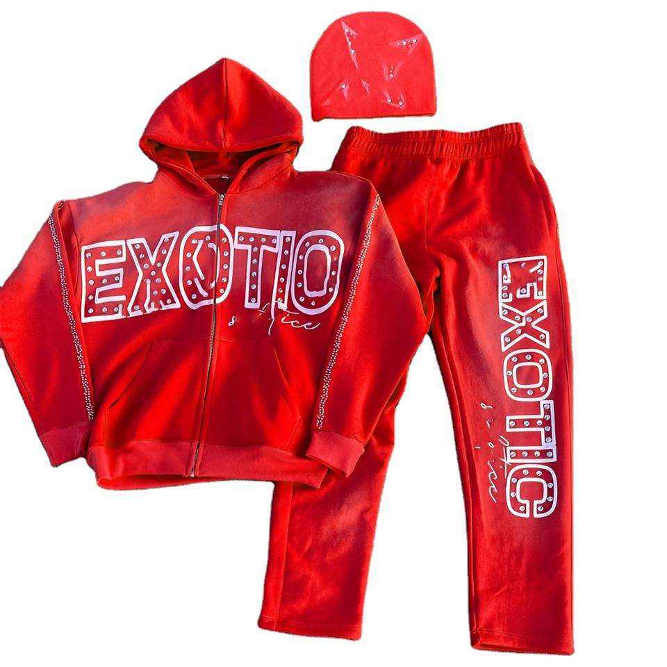 ชุดกีฬาระบายเหงื่อกางเกงซักด้วยกรดชุดวอร์มผ้าฟลีซผ้าฝ้าย100% ชุด500จีเอสเอ็มมีฮู้ดรูดซิปและชุดวอร์มกางเกงลุกเป็นไฟ