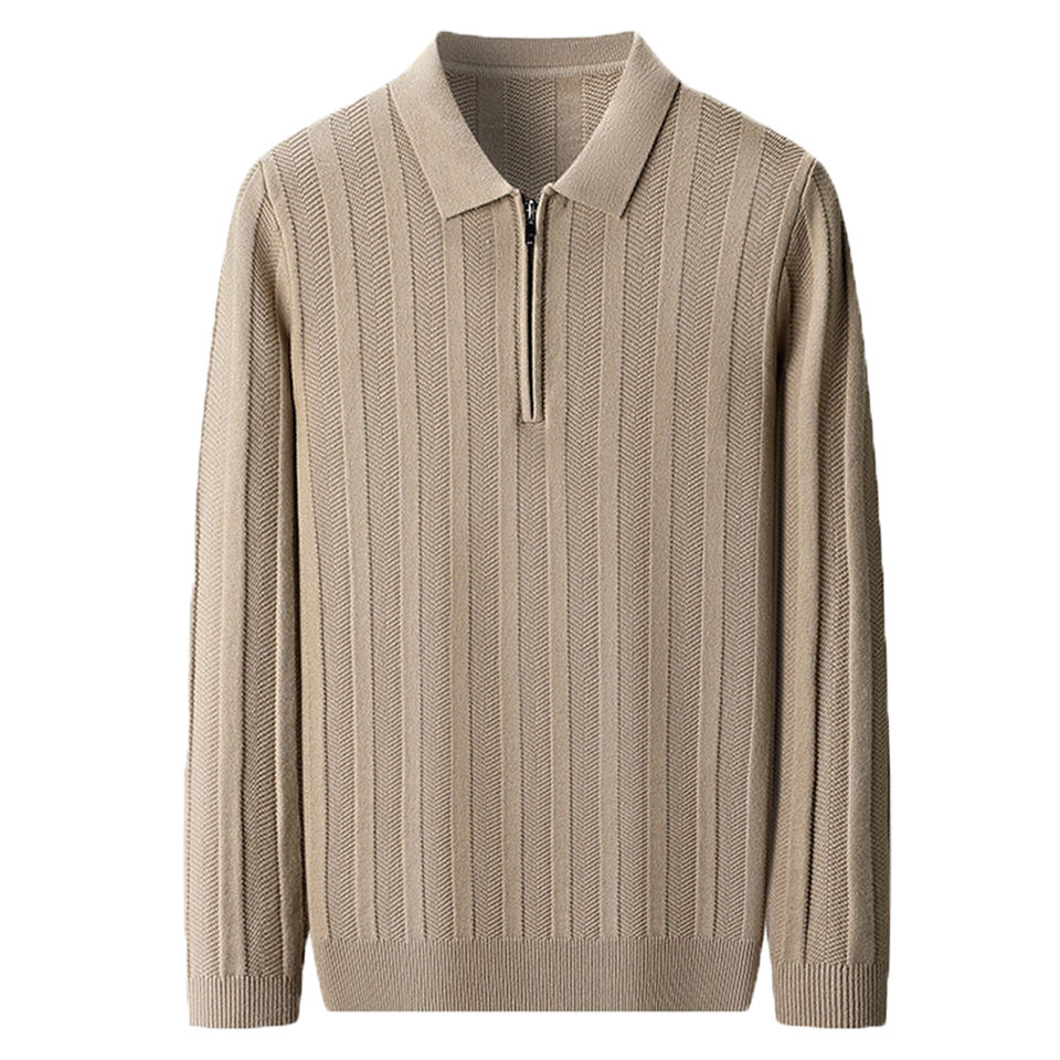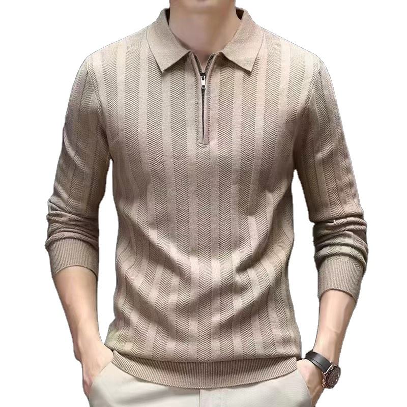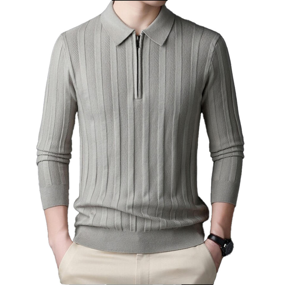Sweater Breathable Knitted Pullover with Half-Zipper Closure Dark Striped Outer Lapel