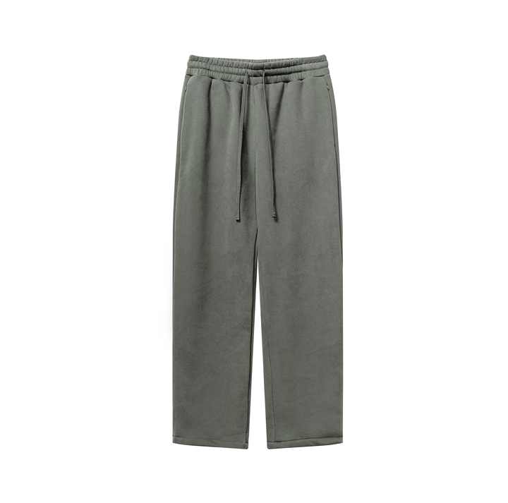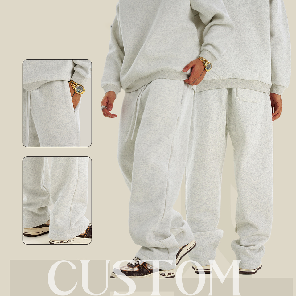 กางเกงวอร์ม 345G ไซส์อเมริกัน ผ้าฟลีซบุขนด้านใน บริการ OEM ปักโลโก้ กางเกงผู้ชาย สีพื้น ทรงเข้ารูป สไตล์สตรีท