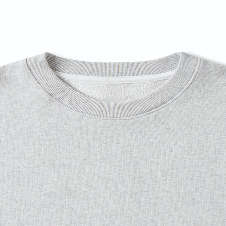 เสื้อสเวตเชิ้ตคอกลมผู้ชาย แขนเสื้อแบบดรอปโชว์เดอร์ พิมพ์ลายพัฟฟ์ ปักโลโก้ตามสั่ง พิมพ์ลายสีพื้นสีขาว รับผลิตตามสั่ง ขายส่ง
