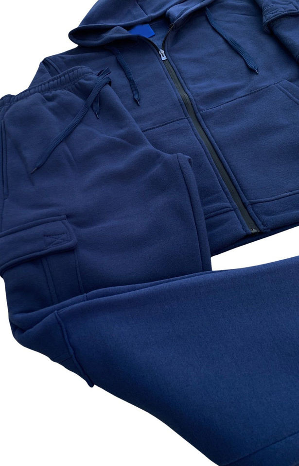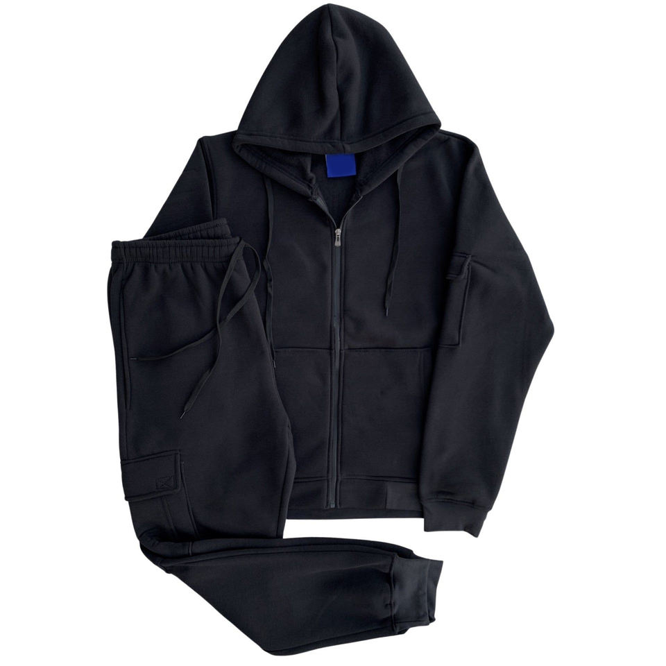 ชุดวอร์มลำลองผู้ชายสำหรับฤดูหนาว แขนยาว มีซิปและฮู้ด + กางเกงจ็อกกิ้งมีเชือกผูก เอวสม็อค ผ้าฝ้ายฟลีซ อุ่นสบาย ชุดสองชิ้น