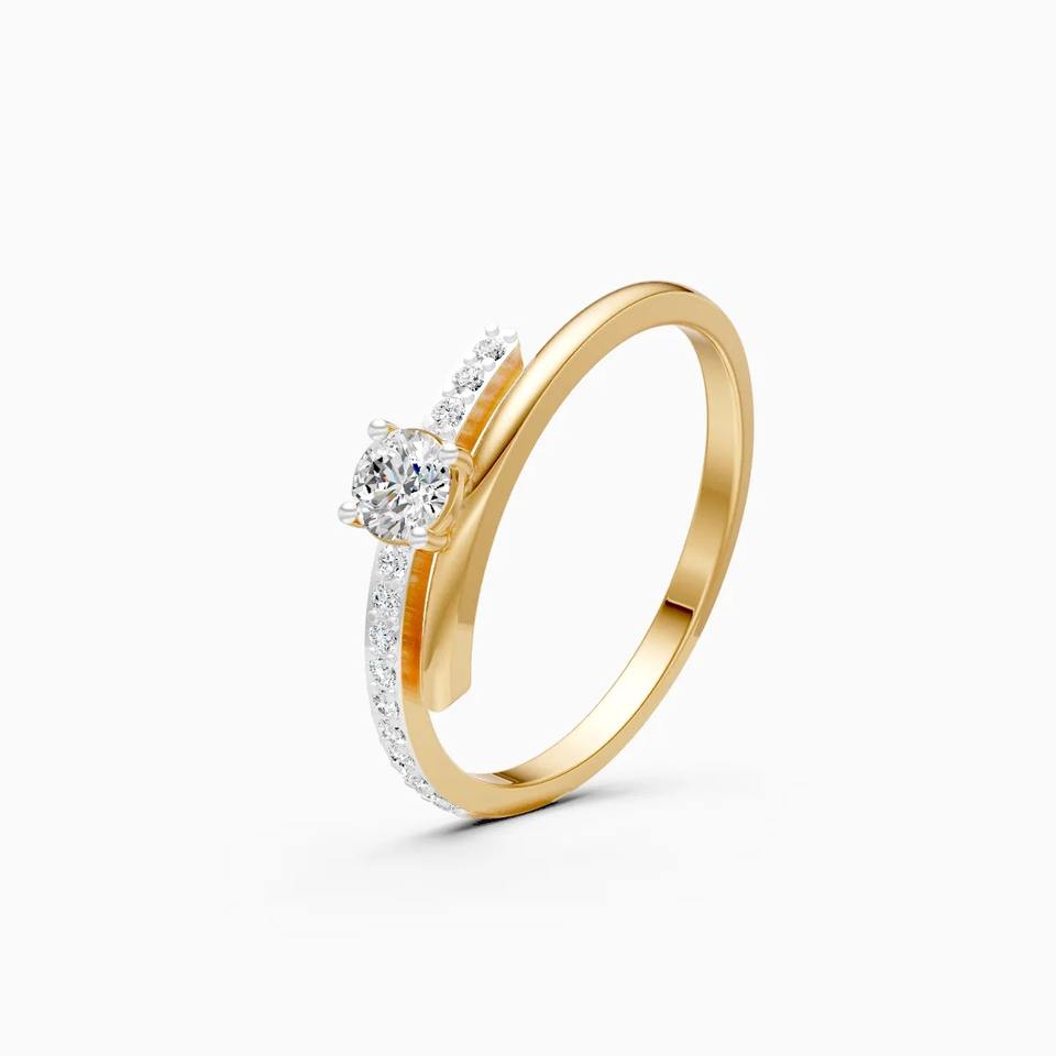 แหวนเพชรทรงโค้งแบบโซลิแทร์ ประดับเพชรแล็บโกรว์ 0.279 กะรัต ตัวเรือนทองคำ 9K สีเหลือง ทองคำขาว ทองคำโรสโกลด์