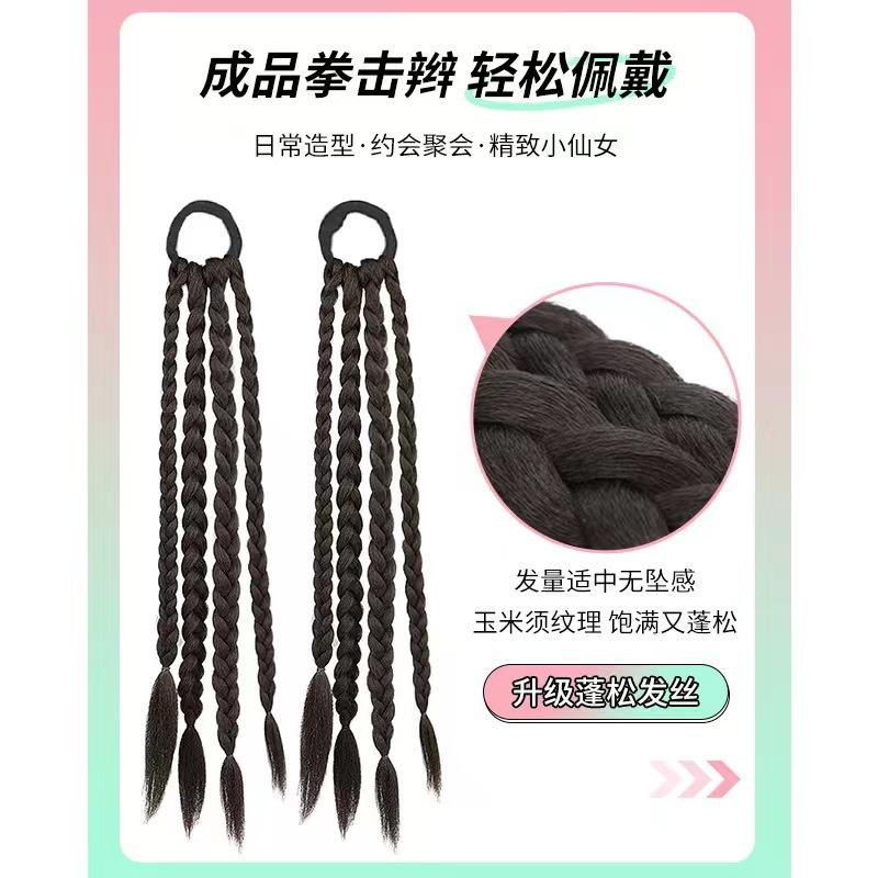 วิกผมสังเคราะห์ทรงหางม้าถักเปียยาวแบบหวานเท่ พร้อมไฮไลท์ ทรงผมเกลียวคู่แบบด้าน สไตล์สาวฮอต