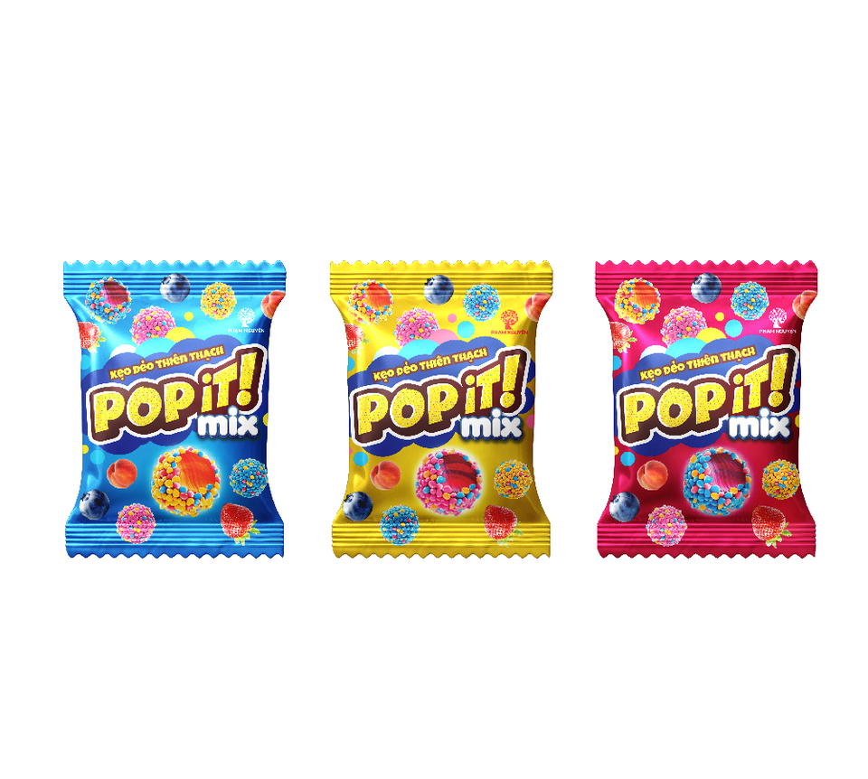 เยลลี่บีนรูปทรงลูกบาศก์รสบลูเบอร์รี่ บรรจุในถุงแบบป๊อปอิท