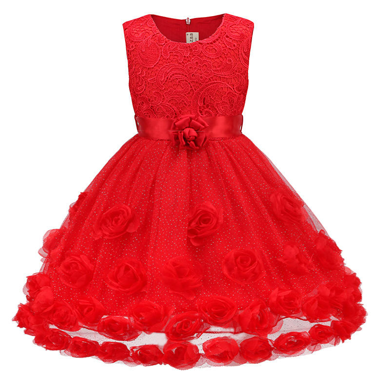 ชุดเดรสเด็กผู้หญิงลายดอกไม้หวานๆ ผลิตในจีน ทำจากผ้าลูกไม้ คอทรงโอ ฟูฟ่อง