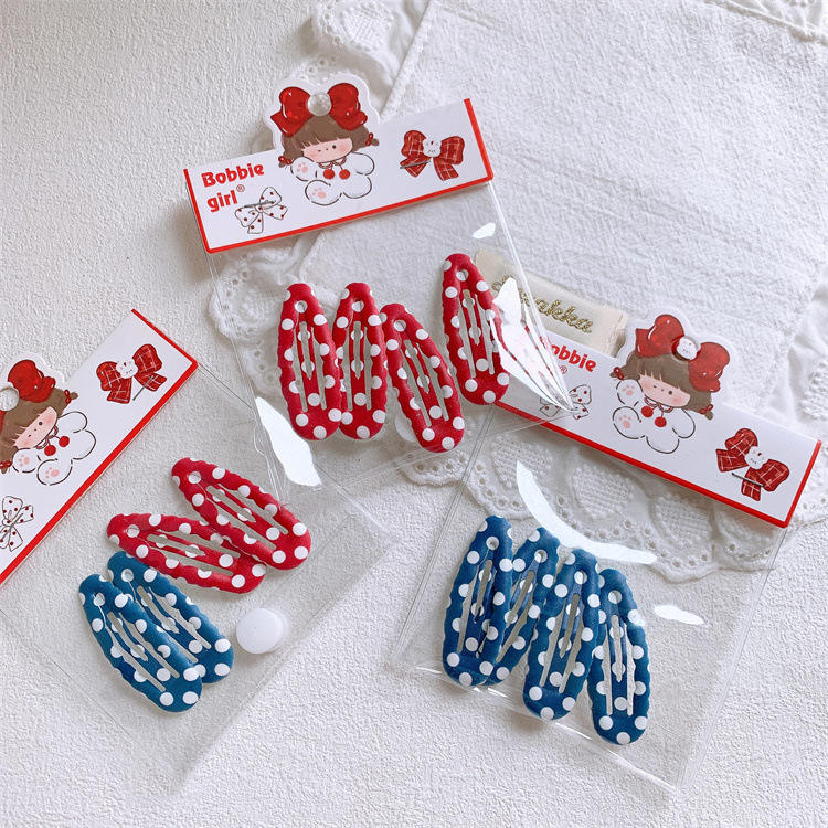 ชุดคลิปหนีบผมหน้าม้าสั้นสำหรับเด็กผู้หญิงแนวหวานคลิปหนีบผมเด็กลายจุดน้ำหยด