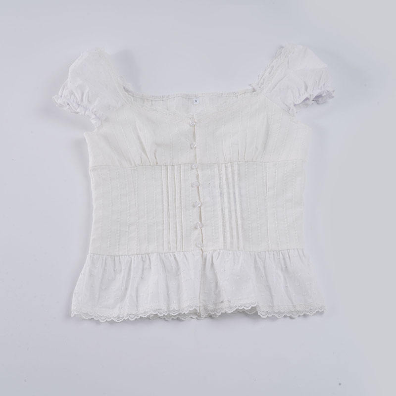 เสื้อเบลาส์ผู้หญิงสไตล์หวานๆ แต่งลูกไม้ ระบายอากาศดี ใส่สบายช่วงฤดูร้อน ติดกระดุม ทรงเข้ารูป คาดเข็มขัด ดีไซน์เรียบง่าย สวมใส่สบายๆ