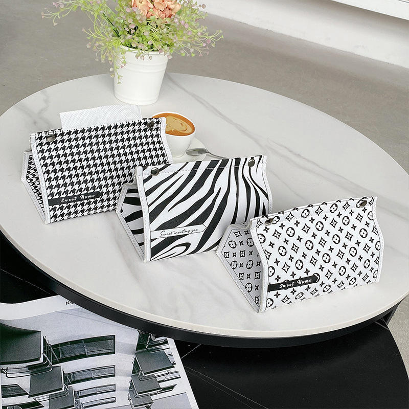กล่องใส่กระดาษทิชชูหนังลายฮาวด์สทูธ Sweet Home กล่องเก็บของตั้งโต๊ะสำหรับตกแต่งห้องนั่งเล่น