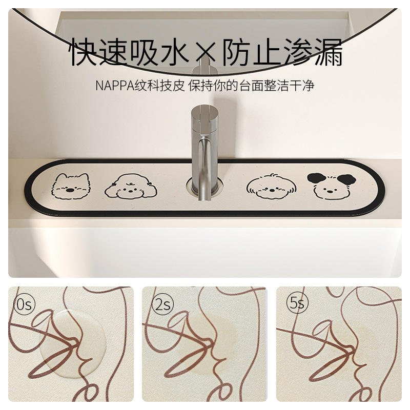 แผ่นรองอาบน้ำรูปวงรีลายการ์ตูน Sweet Pie ทำจากหนัง ดูดซับน้ำได้ดี ใช้สำหรับอ่างล้างหน้า เคาน์เตอร์ครัว และบริเวณก๊อกน้ำในห้องน้ำ