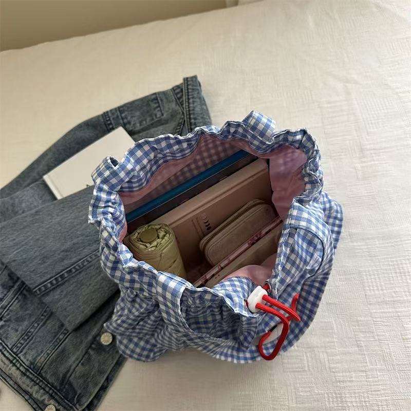 กระเป๋าสะพายไหล่ลายสก็อตหวานมีระบาย