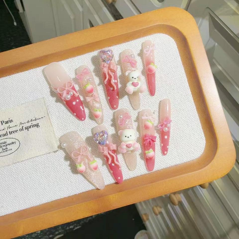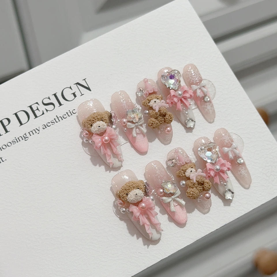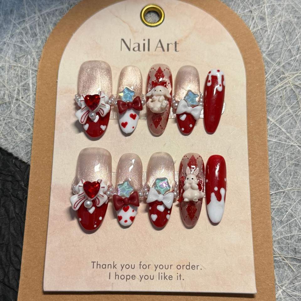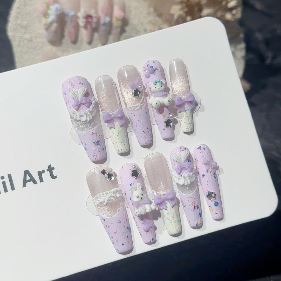 เล็บแบบกดมีกาวแบบแฮนด์เมดสำหรับใส่ในสวนมูสรูปกระต่ายฟรอสติ้งฝรั่งเศสพร้อมกาว