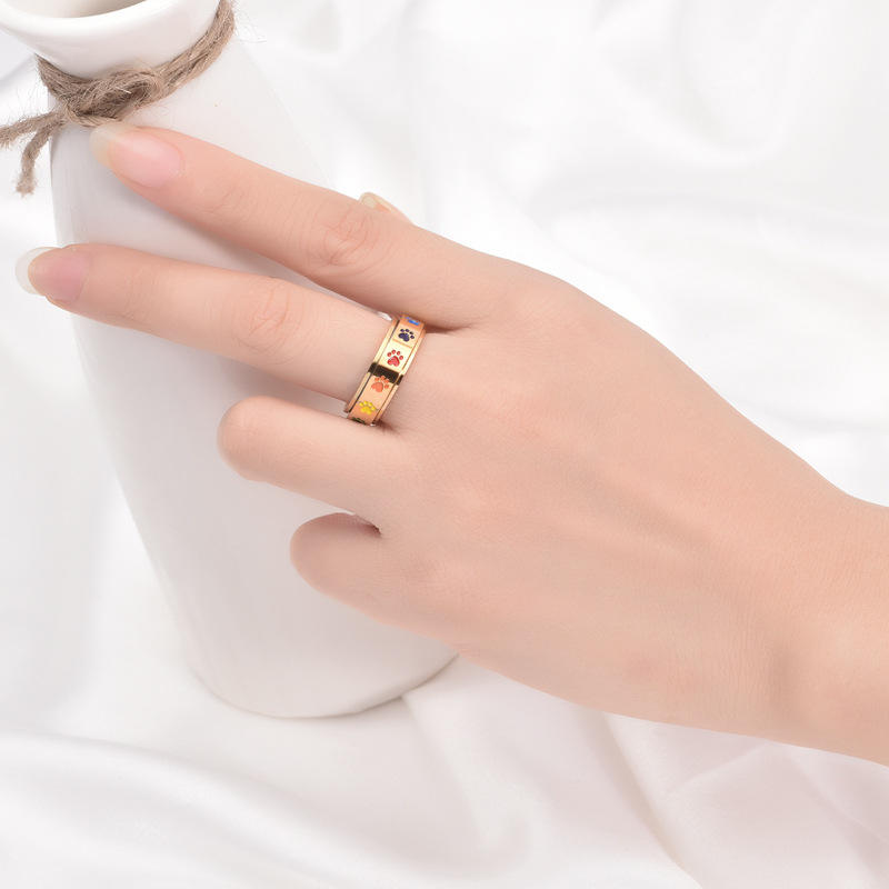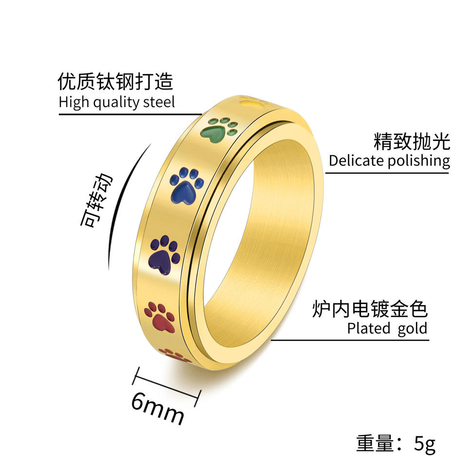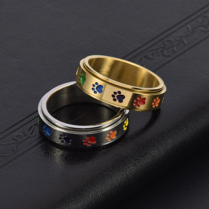 ของเล่นทนทานต่อความวิตกกังวลห่วงสแตนเลสเคลือบสีรุ้งหวานน่ารักแบบหมุนได้สำหรับสุนัขลูกสุนัขและลูกสุนัข