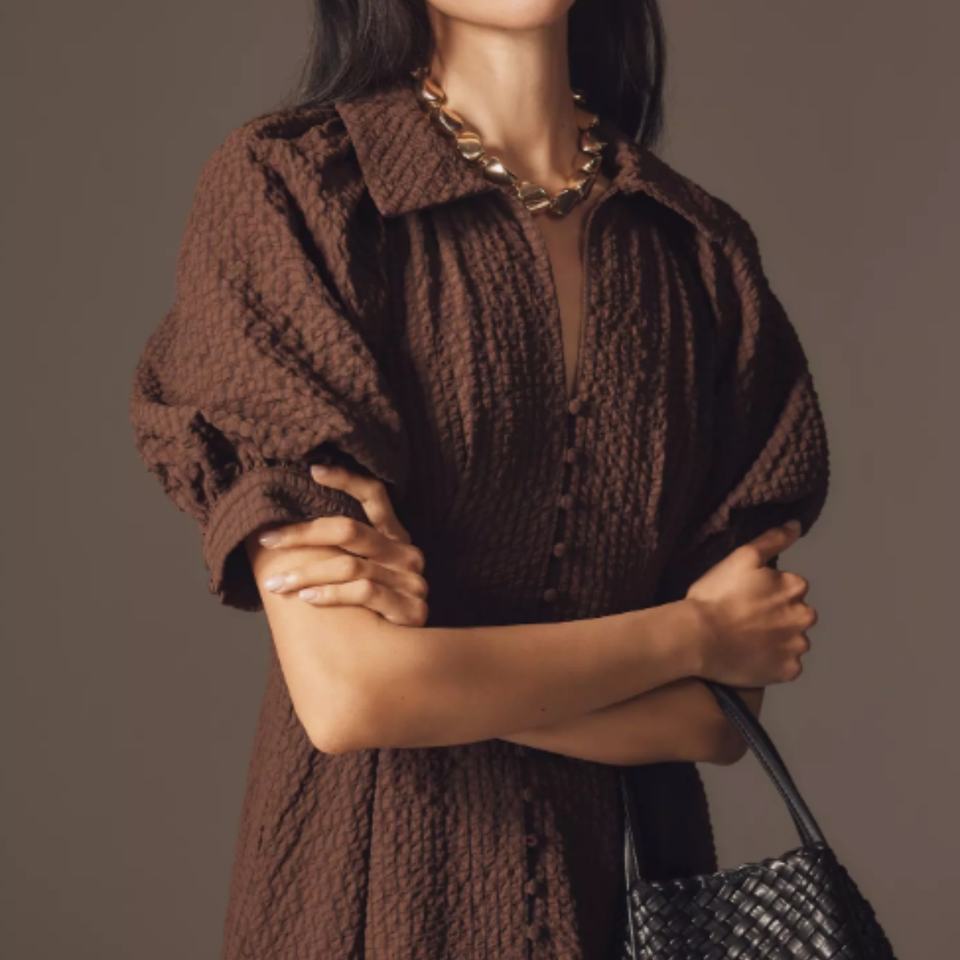เสื้อเชิ้ตทรงเอไลน์แขนพองยาวแบบหวานๆ เซ็กซี่ ผ้าทอเป็นมิตรกับสิ่งแวดล้อม น่ารัก คอปก ระบายอากาศได้ดี ไซส์ XS ถึง 6XL เหมาะสำหรับวันพักผ่อน