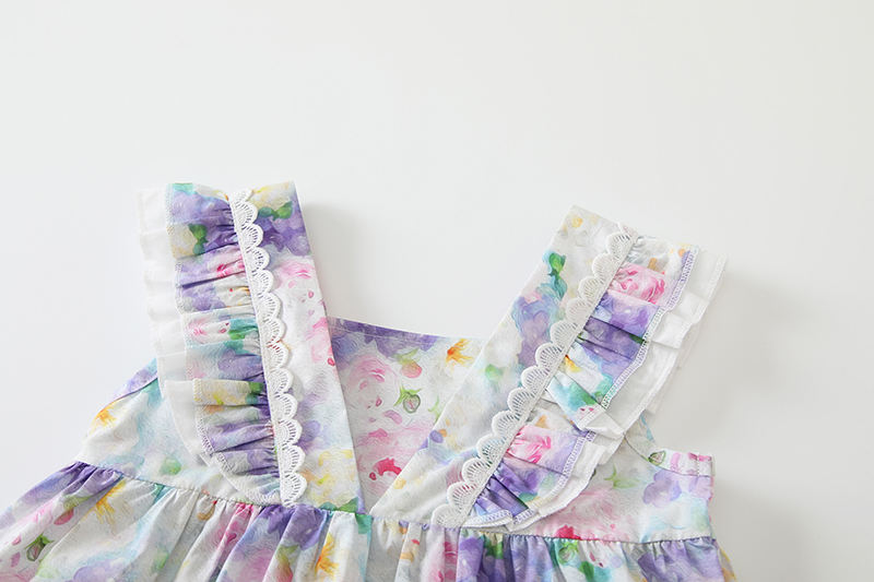 ชุดเดรสยาวถึงเข่าผ้าฝ้ายหวานน่ารักแขนสั้นสำหรับเด็กทารกหญิงชุดเดรสยาวถึงเข่าเป็นมิตรกับสิ่งแวดล้อมสำหรับฤดูร้อน
