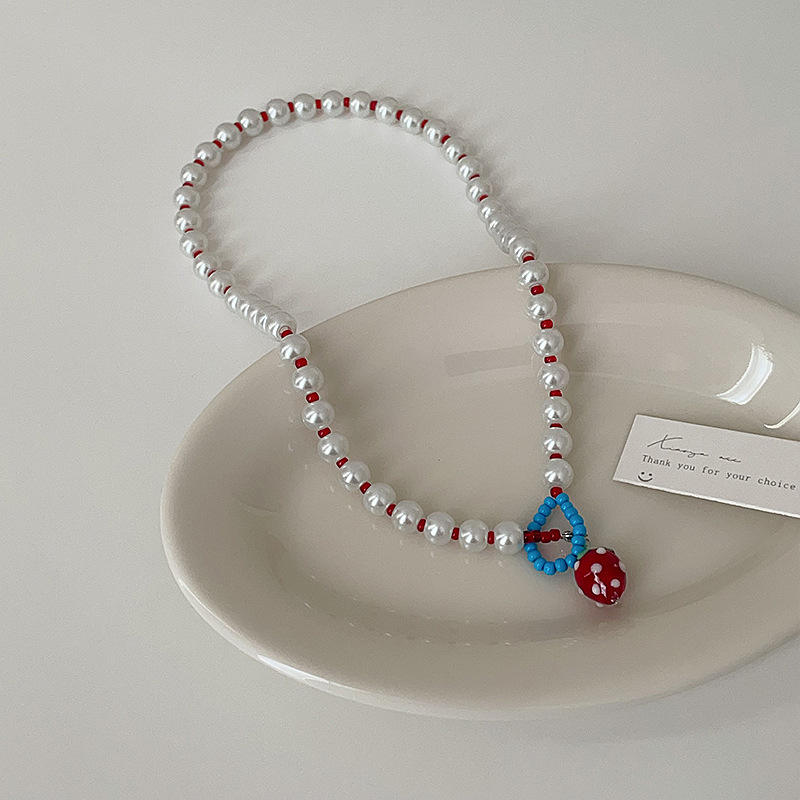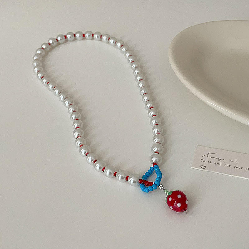 สร้อยคอมุกเทียมรูปสตรอเบอรี่หวานสร้อยคอแฟชั่นสำหรับผู้หญิงเครื่องประดับประจำวัน