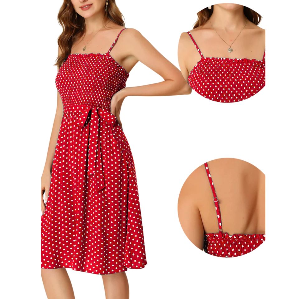 เดรสผ้าฝ้าย100% ทรงเอไลน์แขนกุดสายสปาเก็ตตี้เนื้อผ้าระบายอากาศได้ดีดีไซน์เป็นชั้นๆสำหรับฤดูใบไม้ร่วง
