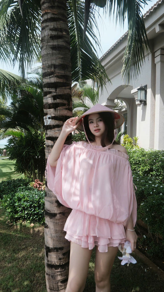 ชุดเซ็ตผ้าชีฟองสีชมพูหวานสไตล์โบชม แขนกุด + กางเกงขาสั้น 100% โพลีเอสเตอร์ ชุดลำลอง 2 ชิ้น ขายส่ง