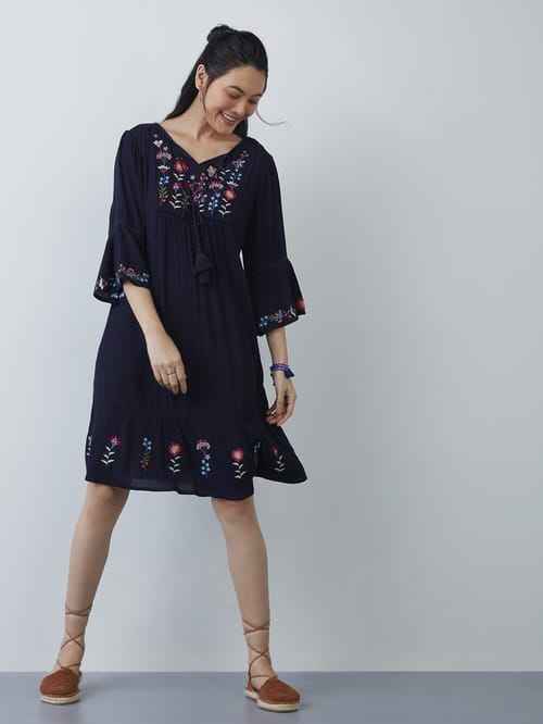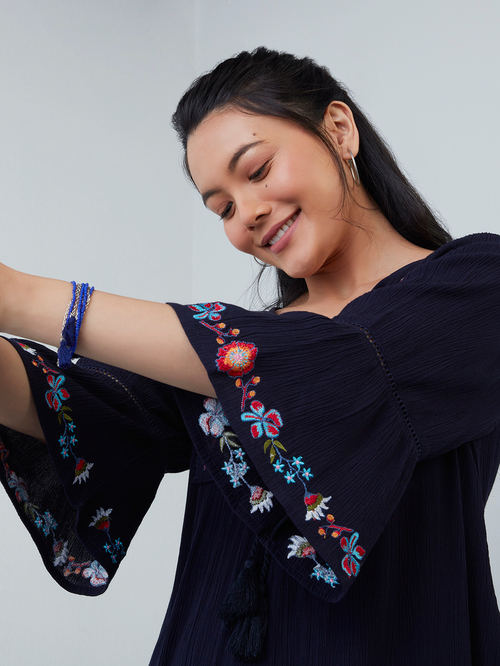 เดรสแม็กซี่ปักแบบดั้งเดิมสไตล์หวานสำหรับผู้หญิงทรงหลวมแขน3/4วินเทจเสื้อคลุมสไตล์หวาน