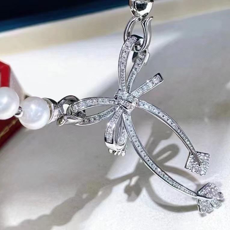 สร้อยคออารมณ์หวาน คู่ของสร้อยคอไข่มุกน้ำจืดธรรมชาติ พร้อมเข็มกลัดโบว์อเนกประสงค์ สง่างามและหลากหลายสไตล์