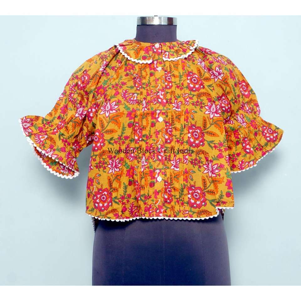 เสื้อท็อปสไตล์อินเดียลายดอกไม้หวานๆ วินเทจ คุณภาพสูงสำหรับผู้หญิง สไตล์เกาหลี เสื้อนอก ระบายอากาศได้ดี ผ้าฝ้าย 100% เป็นมิตรกับสิ่งแวดล้อม แขนทรงระฆัง