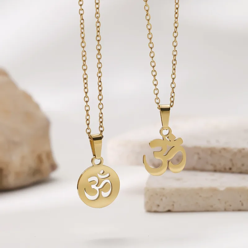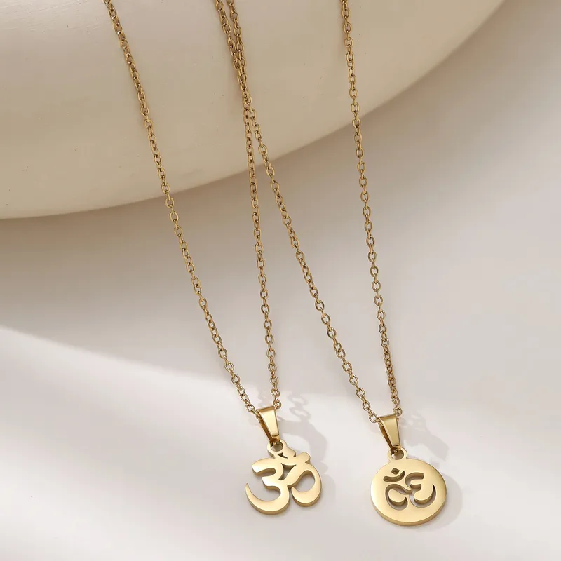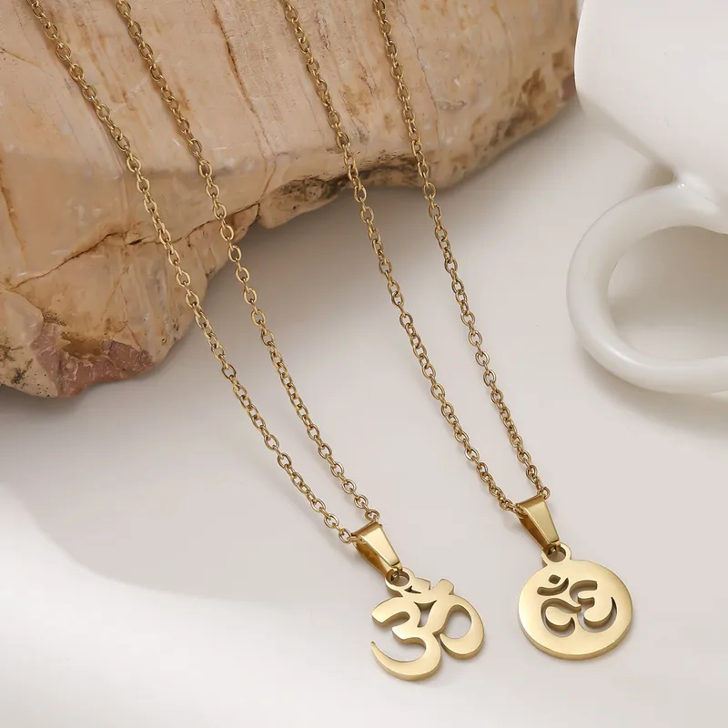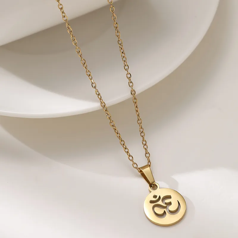 สร้อยคอจี้รูปโยคะสำหรับผู้หญิง ทำจากไทเทเนียมสตีล ชุบทองคำแท้ 18K พร้อมสายเคเบิล