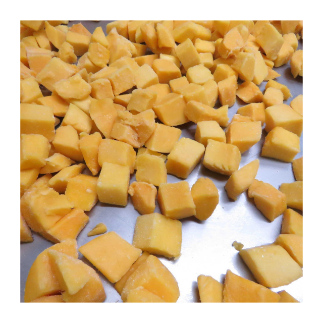 ชิ้นมะม่วงแช่แข็งหวานและสุกแปรรูปในเวียดนามด้วยเทคโนโลยี iqf ยอดเยี่ยมสำหรับการส่งออกและใช้ในอุตสาหกรรม