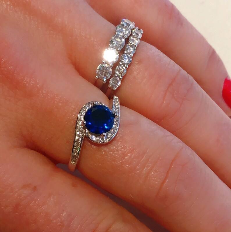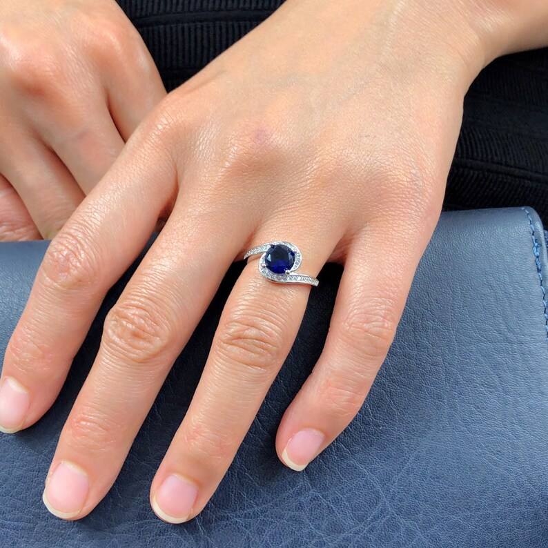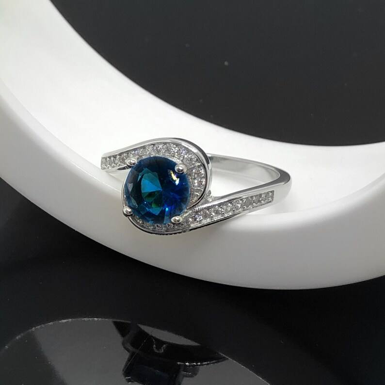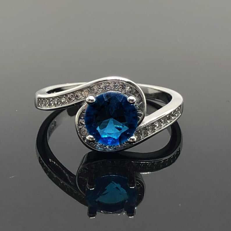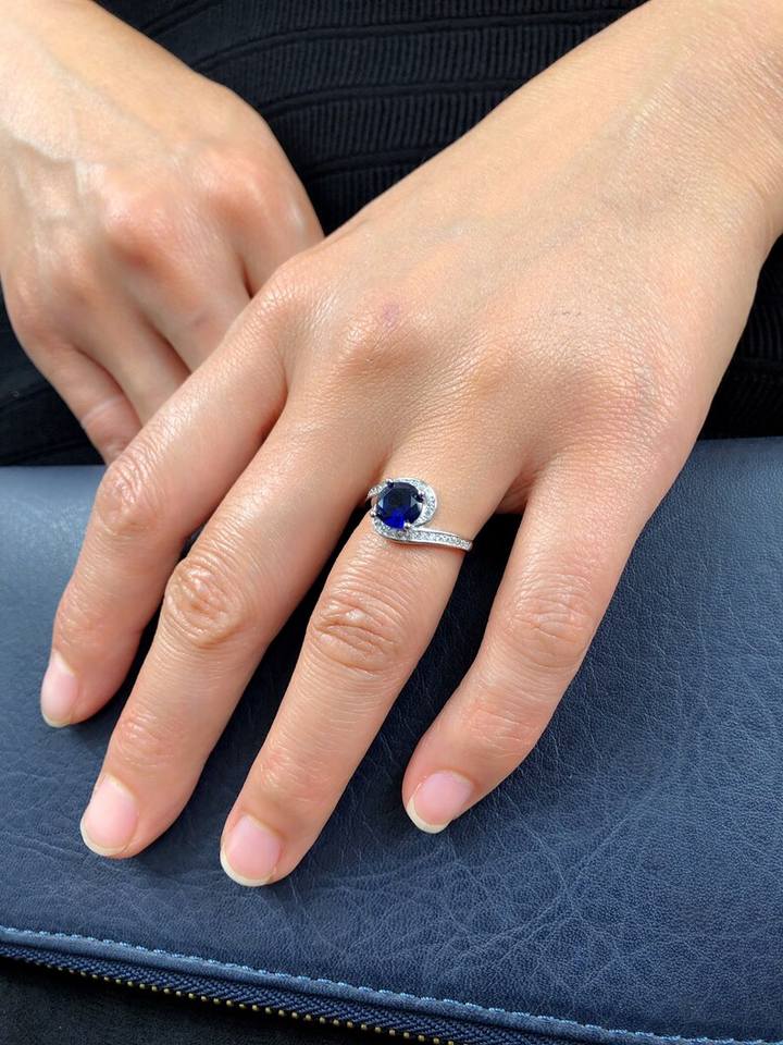 แหวนเงินแท้ประดับไพลินสีน้ำเงินสดใส สำหรับหมั้น แต่งงาน หรือเป็นของขวัญวันเกิด/วันครบรอบ สำหรับผู้หญิง