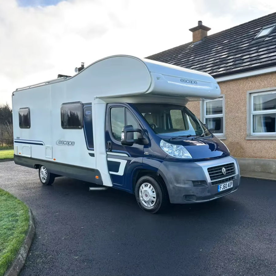รถบ้านสวิฟท์มอเตอร์โฮม เยอรมนี 6 ที่นอน สีน้ำเงินเข้ม ตัวถังอะลูมิเนียม สำหรับใช้เป็นบ้านเคลื่อนที่ แคมป์ปิ้ง และเดินทางทางอากาศ