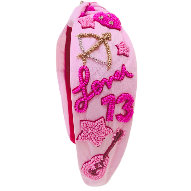 สายรัดผมผูกโบว์สีชมพูน่ารักน่ารักพร้อมลูกปัดคริสตัลออกแบบได้เองสำหรับผู้หญิงอุปกรณ์คอนเสิร์ตรวดเร็ว
