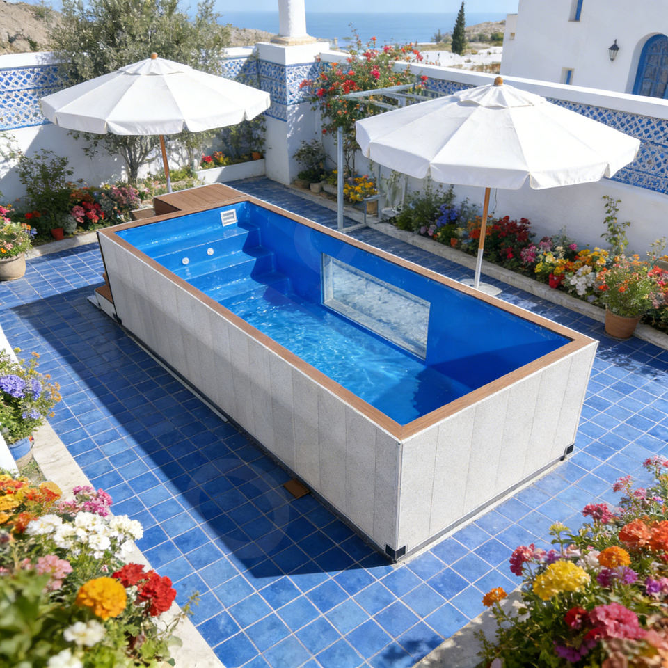 สระว่ายน้ำไฟเบอร์กลาสขนาดเล็ก 4 เมตร สำหรับผู้ใหญ่ ตั้งบนดิน สำหรับใช้กลางแจ้ง ทนทานต่อรังสียูวีและกัดกร่อน