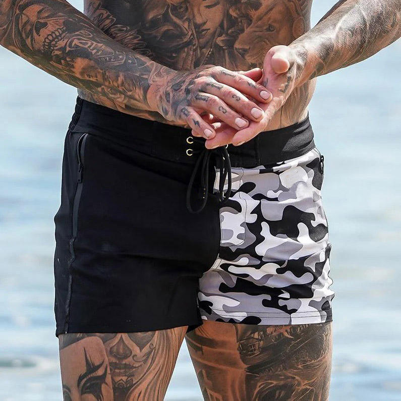 กางเกงว่ายน้ำขาสั้นสำหรับผู้ชายพิมพ์ลายแห้งเร็วชุดว่ายน้ำลำลองของผู้ชายชุดใส่ชายหาด