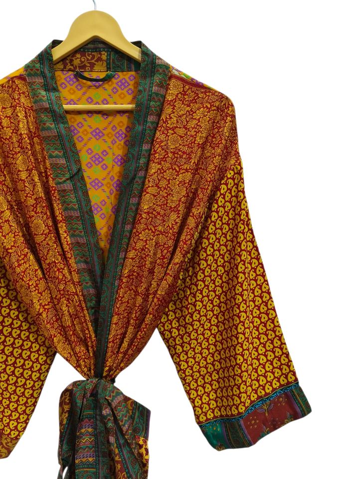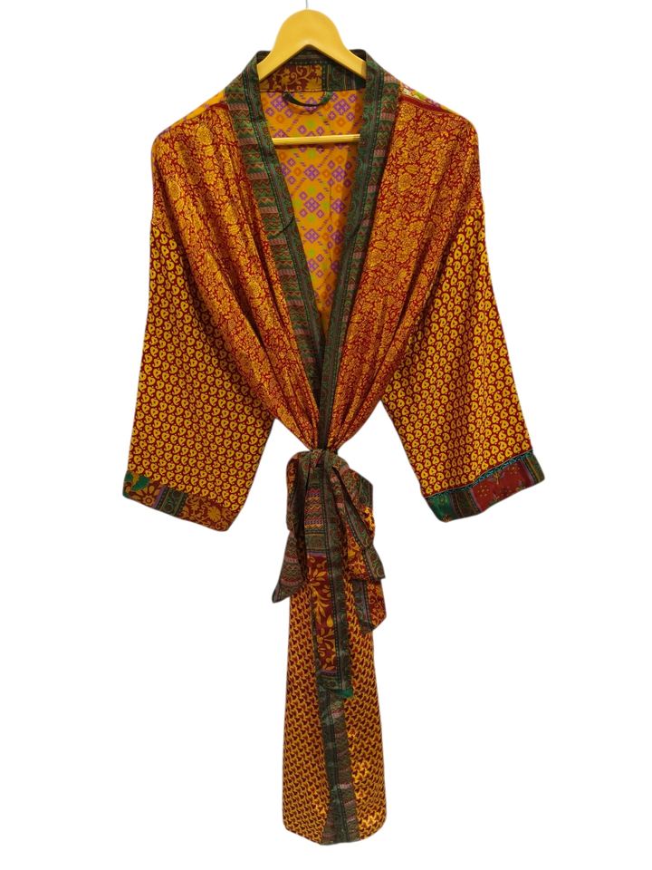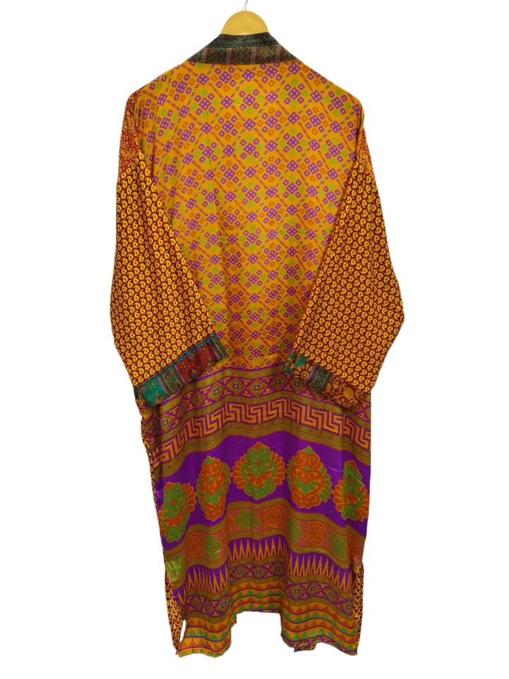 ชุดใส่ว่ายน้ำผ้าไหมเสื้อคลุมอาบน้ำผ้าไหมหลากสีเสื้อคลุมใส่กลางคืนชุดคลุมใส่ในเวลากลางคืนชุดผ้าไหมส่าหรีสไตล์วินเทจของอินเดียที่นำกลับมาใช้ใหม่