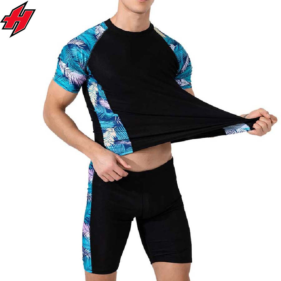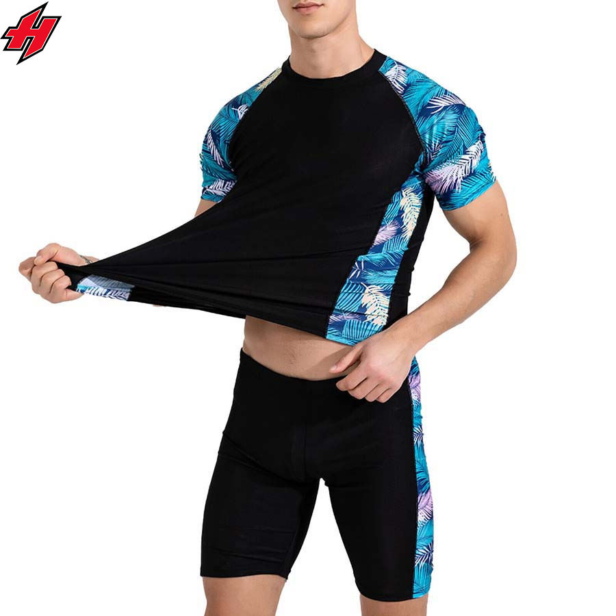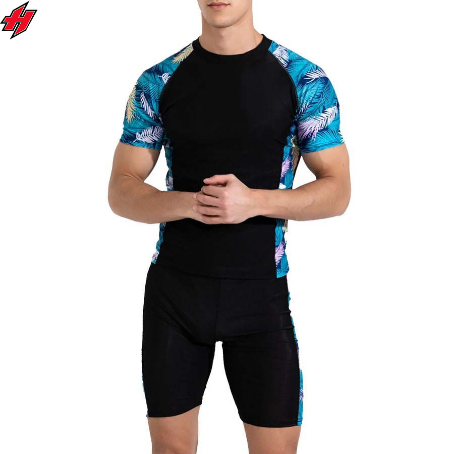 ชุดว่ายน้ำผู้ชาย2ชิ้นชุดเสื้อและกางเกงขาสั้นผ้าฝ้ายโพลีเอสเตอร์พิมพ์ซับลิเมชันตามสั่งชุดฤดูร้อน