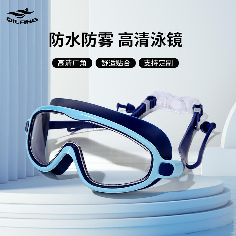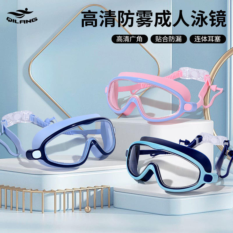 แว่นตาว่ายน้ำสำหรับผู้ใหญ่กรอบใหญ่ป้องกันหมอกกันน้ำเลนส์พีซีวัสดุซิลิโคนใช้งานได้ทั่วไป