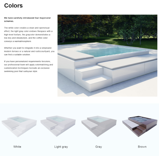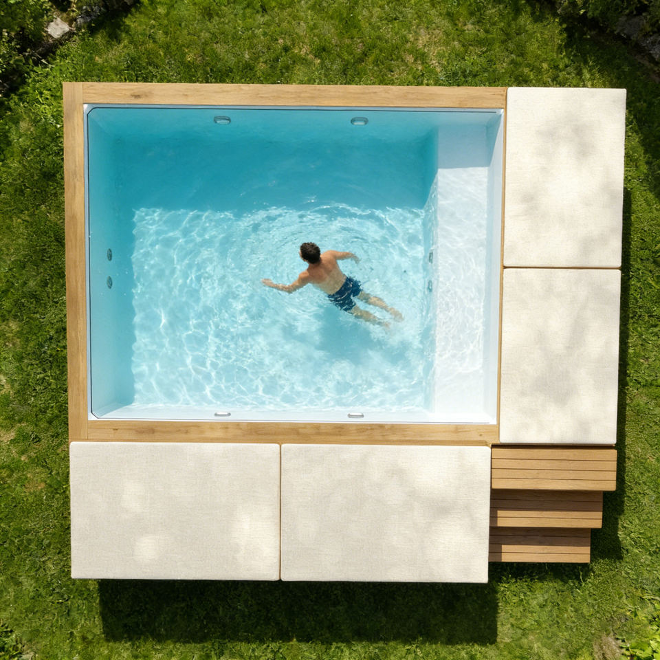สระว่ายน้ำพร้อมโซฟาพักผ่อน สปาว่ายน้ำกลางแจ้ง สระว่ายน้ำเหนือพื้นดิน สระว่ายน้ำแบบลูกโซ่ สระว่ายน้ำพร้อมอ่างน้ำร้อน