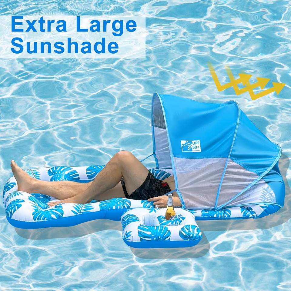 ห่วงยางว่ายน้ำพีวีซีเป่าลมสำหรับวัยรุ่นและผู้ใหญ่ พร้อมที่บังแดด