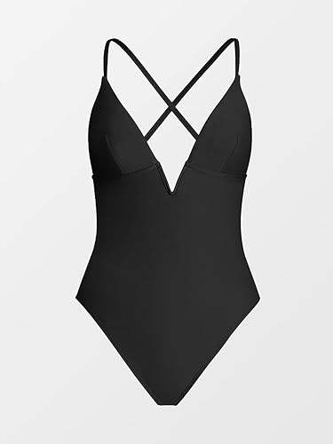ชุดว่ายน้ำพร้อมดีไซน์คอวีแบบไฮคัท ชุดว่ายน้ำชายหาดลายเรียบสำหรับผู้หญิง
