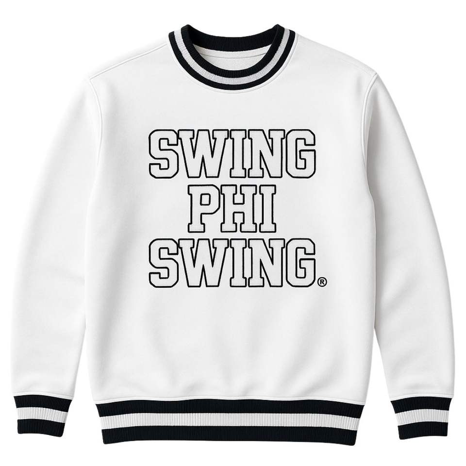 SWING phi Swing Social Fellowship เสื้อคอกลมสีขาวผ้าคอตตอนผ้ากำมะหยี่ปักลายสีดำตัดเย็บเสื้อผ้าชมรมกรีก