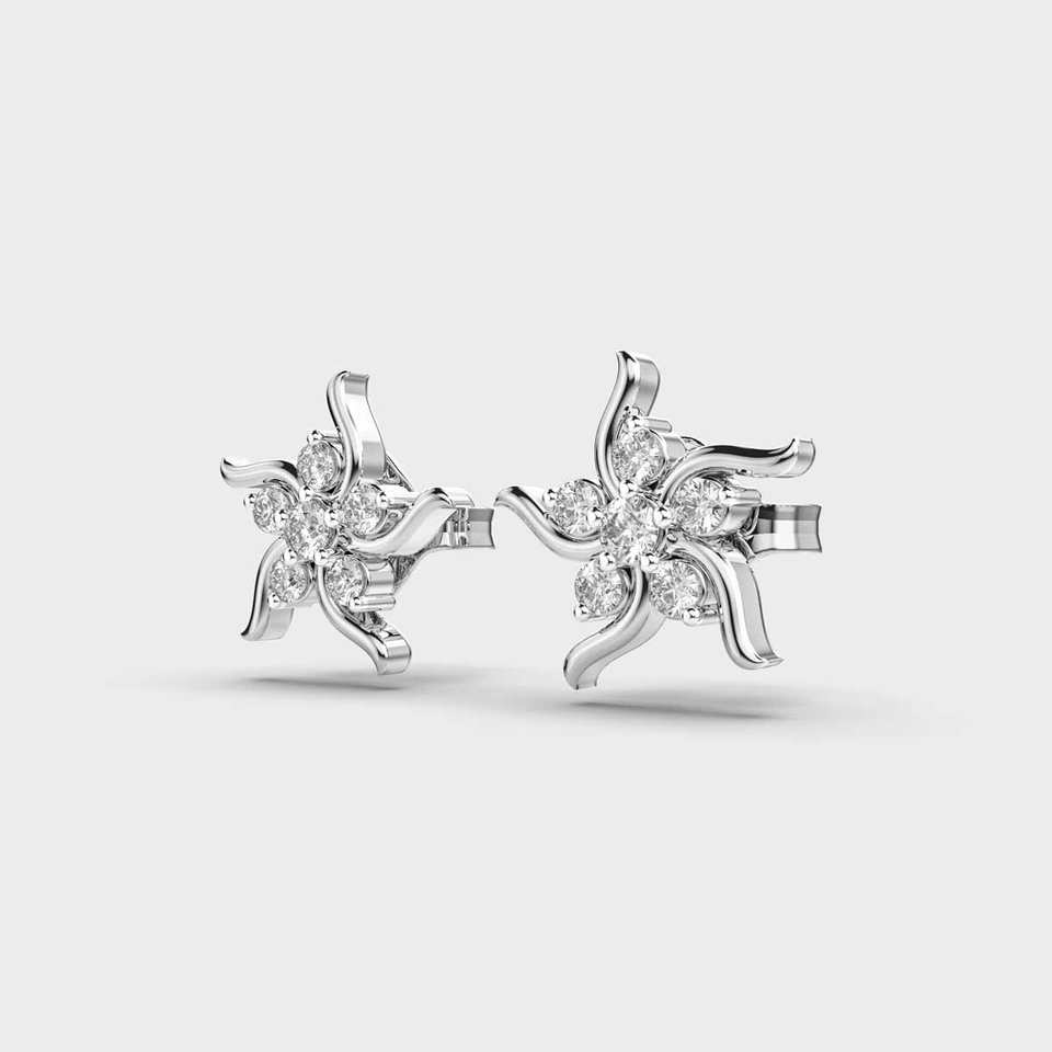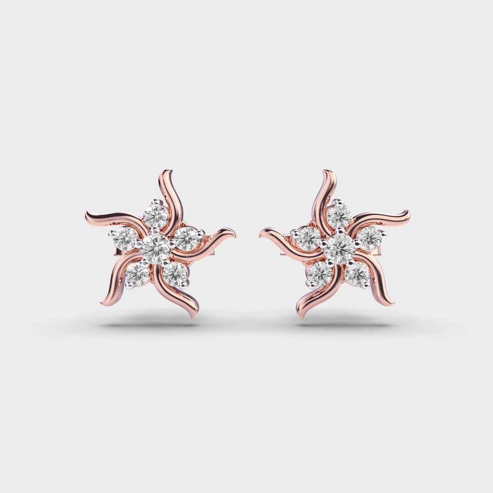ต่างหูเพชรทรงดอกไม้แบบฝัง 14K โรสโกลด์/ไวท์โกลด์/เยลโลว์โกลด์ ชุบโรเดียม รับรองโดย IGI ของขวัญสำหรับงานฉลองครบรอบ